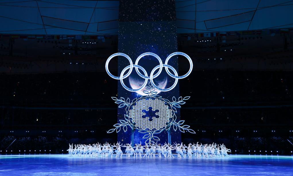 这是2022年2月4日晚在北京国家体育场举行的第二十四届冬季奥林匹克运动会开幕式上的“构建一朵雪花”环节。新华社记者 曹灿 摄