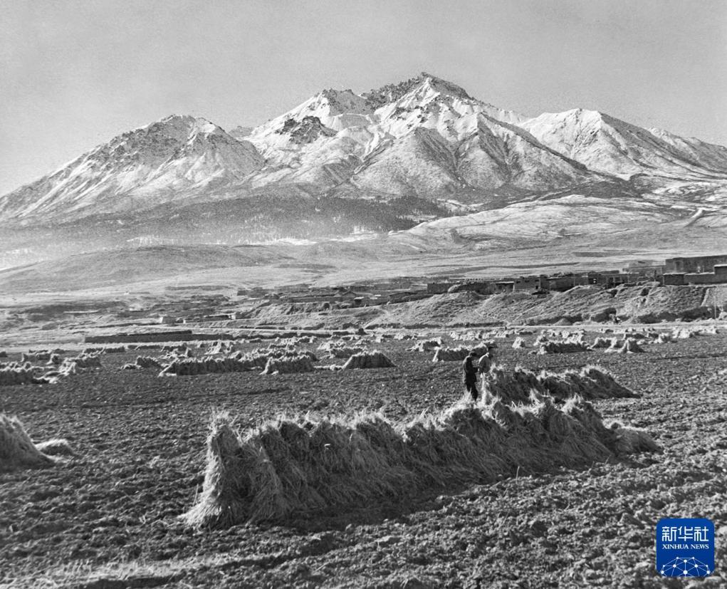 祁连山下的青稞喜获丰收。(1961年11月24日发)新华社记者 班智远 摄