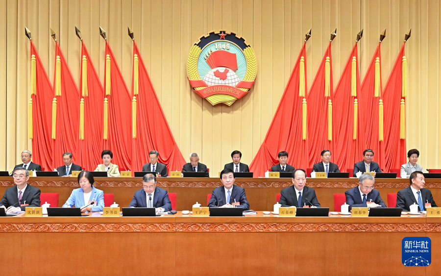 10月9日,政协第十四届全国委员会常务委员会第九次会议在北京开幕。中共中央政治局常委、全国政协主席王沪宁出席开幕会。新华社记者 岳月伟 摄