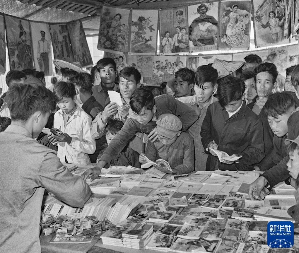 福建漳州的农村青年在书摊上选购书籍。(1965年11月27日发)新华社发