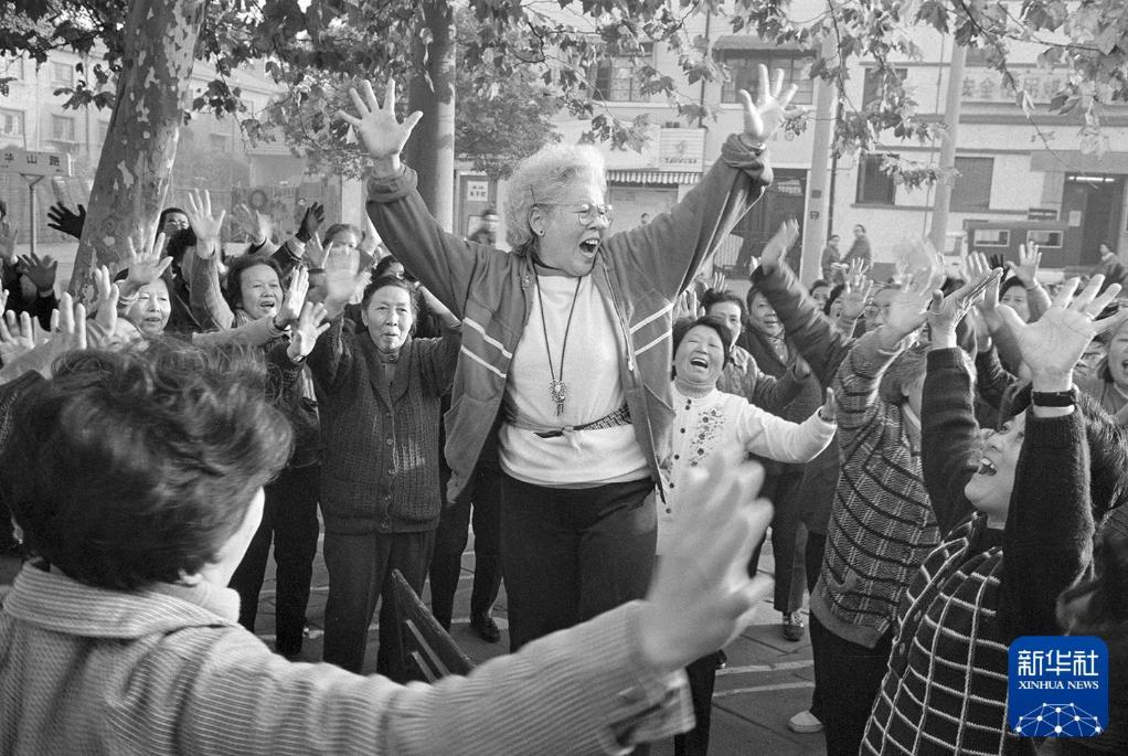 上海市民在街头跳老年迪斯科。(1989年12月12日发)新华社记者 王子瑾 摄