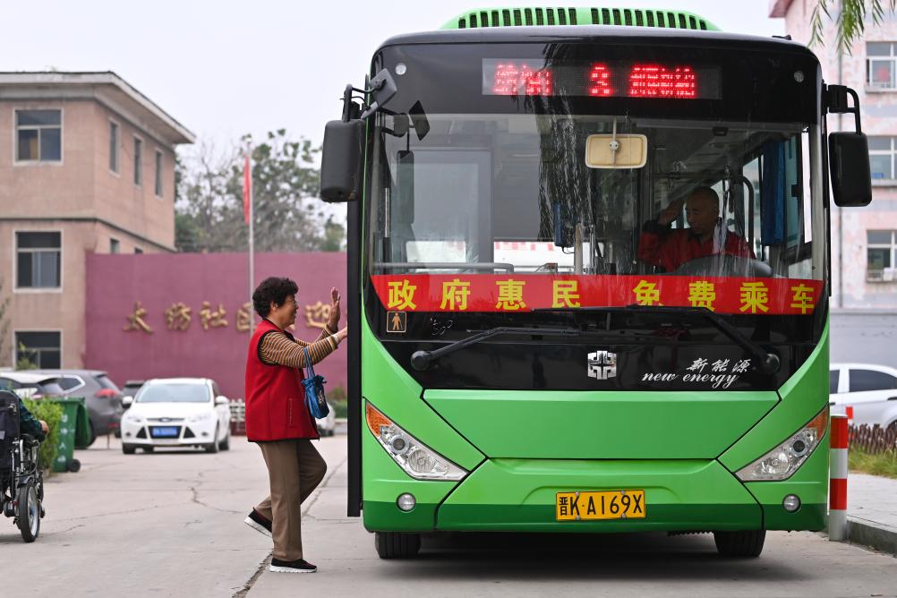 9月27日,在晋中市太谷区,张改英乘坐免费公交。