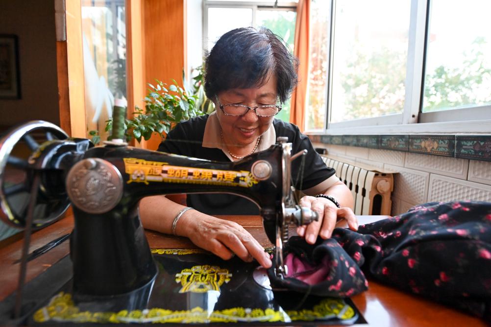 9月19日,张改英在位于晋中市太谷区太纺社区的家里用缝纫机缝补衣服。这台购置于20世纪70年代的缝纫机已陪伴她50多年。