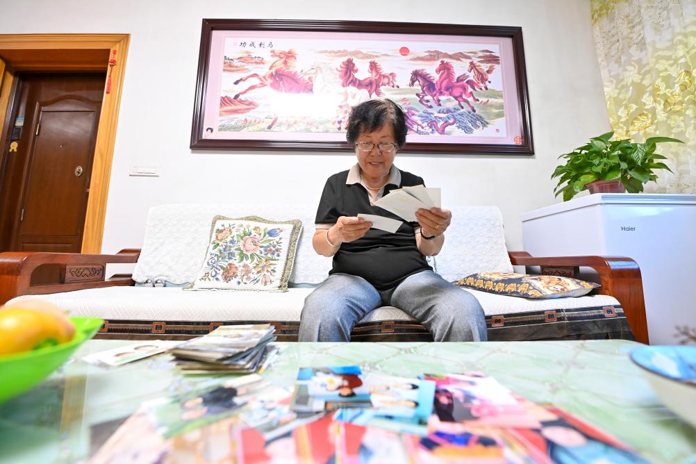 9月19日,张改英在位于晋中市太谷区太纺社区的家里翻看老照片。