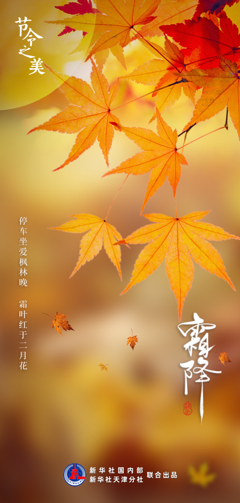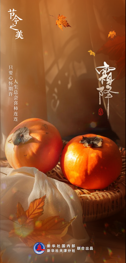 新华社天津10月21日电(记者 周润健)“霜降水返壑,风落木归山”,北京时间10月23日6时15分将迎来霜降节气。经过秋霜的“抚慰”,柿子红了,像姑娘娇羞的脸;枫叶红了,似二月盛开的花。