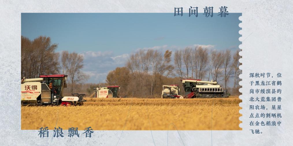 深秋时节,我国东北地区三江平原广袤的黑土地上,金色的稻穗随风摇曳,汇成一片金色的“稻海”。从清晨到日暮,在农机的轰鸣中,在勤劳的双手间,光影流转,稻浪飘香。
