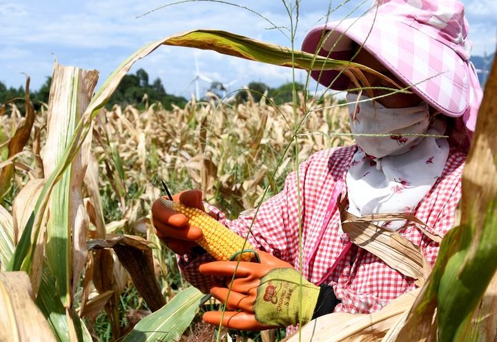 2024年9月9日,在西昌市阿七镇的西昌市玉米种业现代农业园区里,一家农业企业的工人在收制种玉米。新华社记者 高健钧 摄