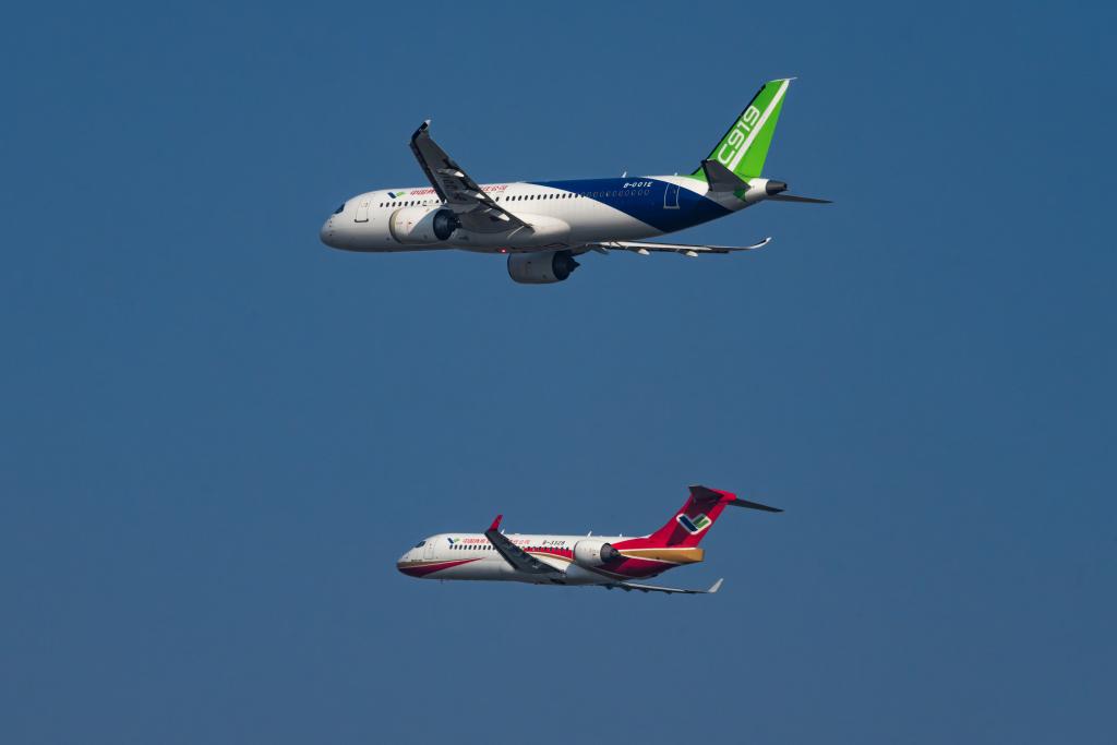 国产飞机C919和ARJ21首次完成双机编队飞行表演。(受访者供图)
