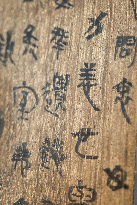 4月15日,云梦县博物馆陈列的《黑夫木牍》(复制品)局部。新华社记者 肖艺九 摄