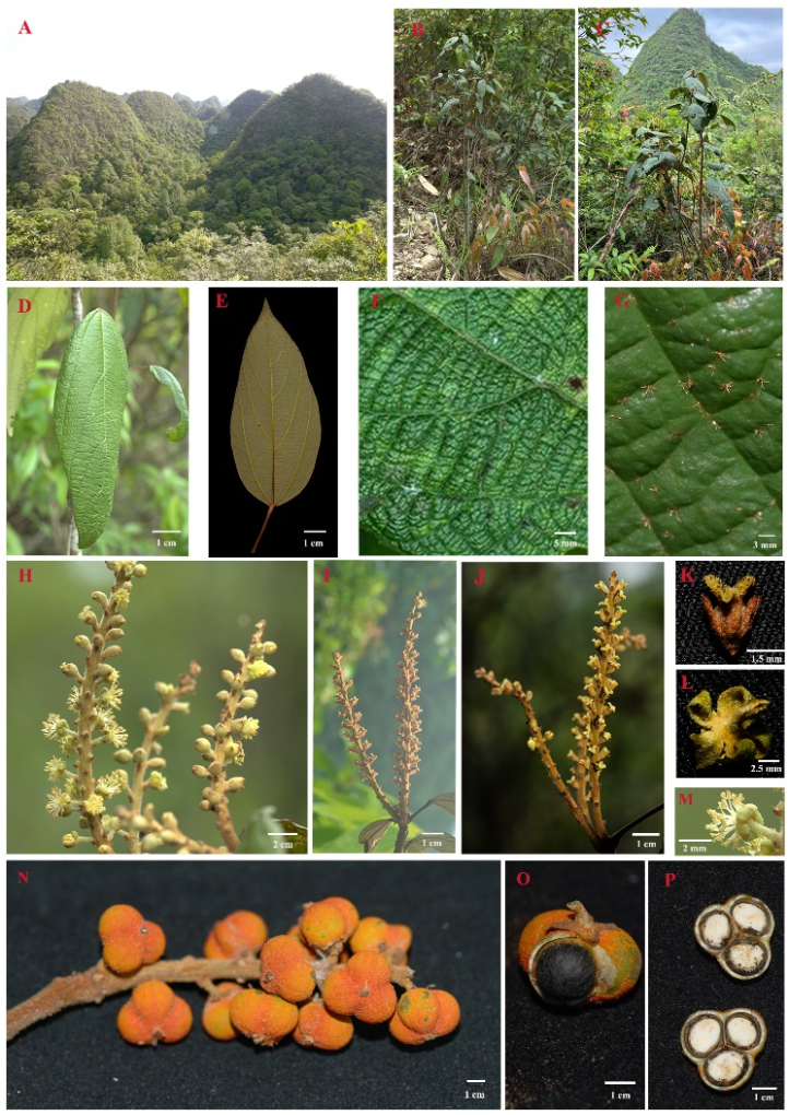 论文通讯作者和团队负责人、贵州大学林学院教授安明态介绍,10多年前,贵州大学林学院研究团队在茂兰国家级自然保护区开展植物群落监测时就关注到该树种,一直苦于没有采集到其花果标本。去年5月至8月,该团队在开展茂兰大样地第一轮植物调查监测和茂兰国家级自然保护区生物多样性考察过程中,观察到它开花和结实,经过进一步形态学和分子系统学研究后,证实其为新物种。