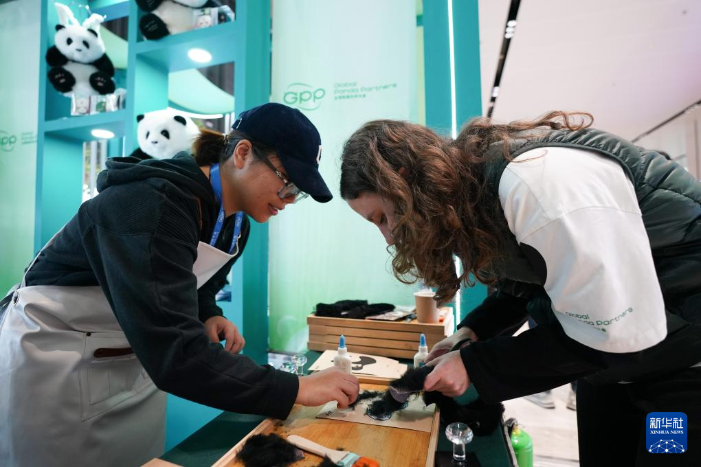 11月26日,嘉宾在2024全球熊猫伙伴大会会场体验制作大熊猫玩偶。新华社记者 胥冰洁 摄