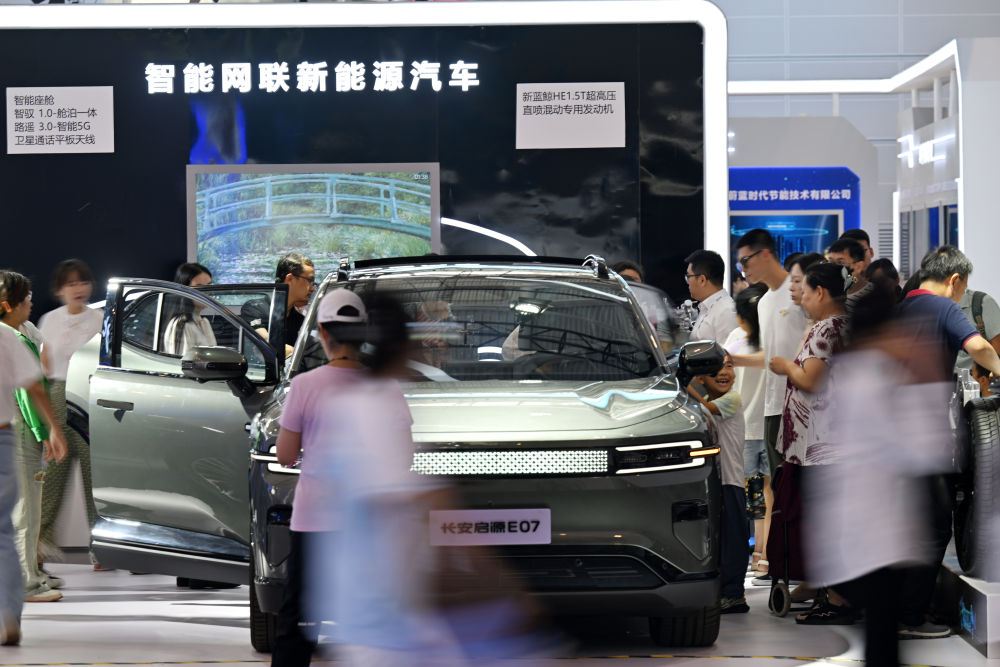 2024年6月22日,观众在天津举行的2024世界智能产业博览会长安汽车展台参观。新华社记者 李然 摄