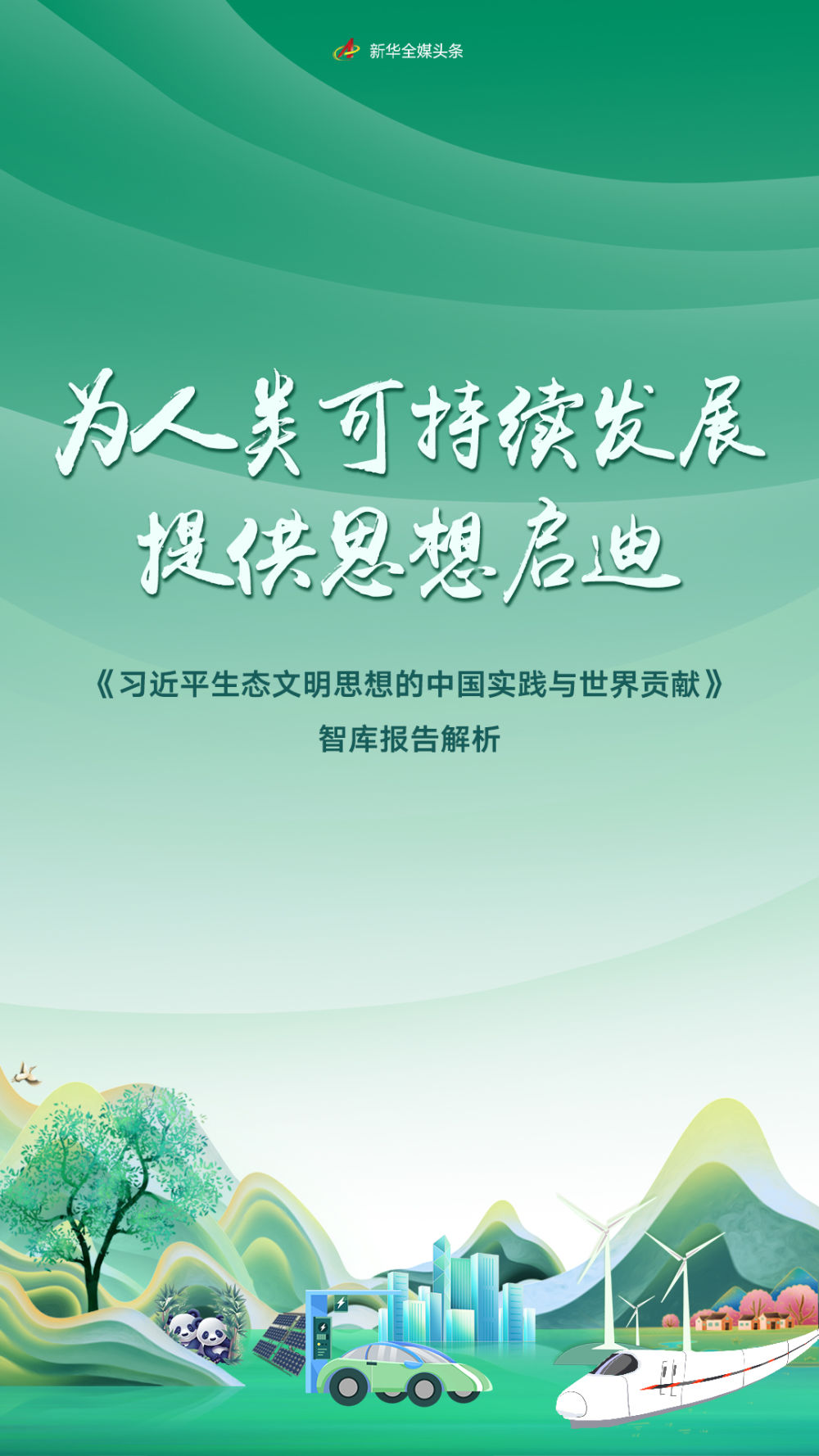 报告还指出,习近平生态文明思想基于历史、立足当下、面向全球、着眼未来,倡议文明互鉴、和谐共生、以人为本、绿色繁荣、系统治理、务实合作,系统阐释和科学谋划了生态文明建设的战略定位、目标任务、总体思路、重大原则,凝结了对发展人类文明、建设美丽中国和清洁美丽世界的睿智思考和深刻洞见。