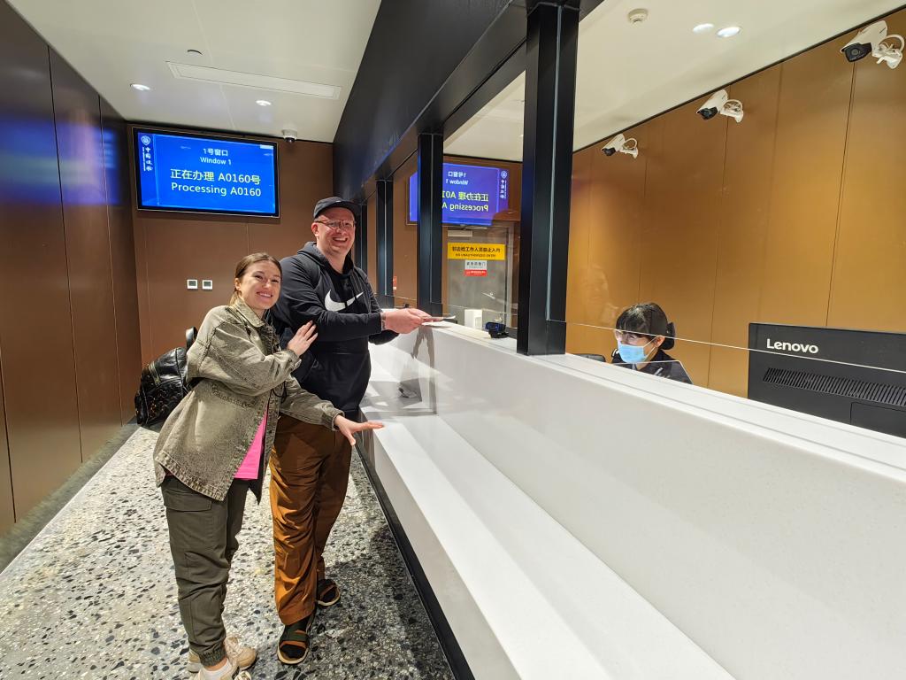 11月24日,正在办理144小时过境免签手续的俄罗斯旅客。(北京大兴机场边检站供图)