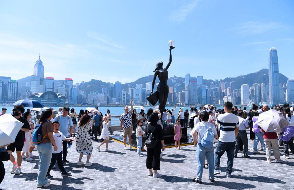 游客在香港尖沙咀游览(10月3日摄)。新华社记者 陈铎 摄