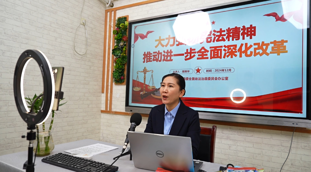 为做好宪法及相关法律知识宣讲,兰考县相关单位还开启了视频直播,打破场地限制,让更多群众了解宪法知识。兰考县委依法治县办秘书股负责人陈艳华说,现在这个社会飞速发展,在线上开直播,通过这种互联网的形式,能影响更多的人,提高群众的法律意识。