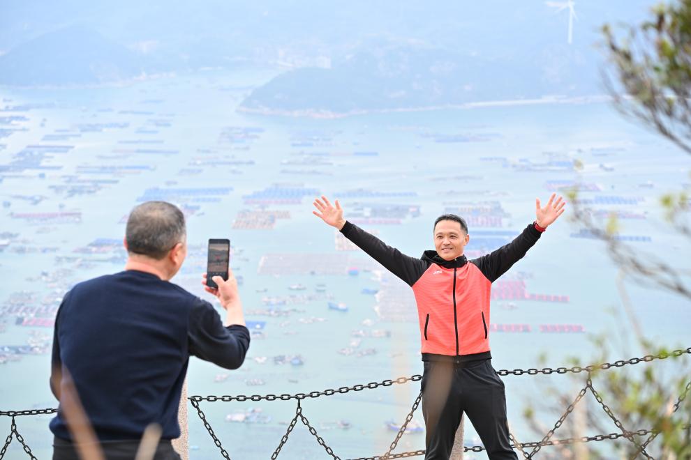 12月4日,游客在福州市连江县奇达村旗冠顶景点拍照留影。