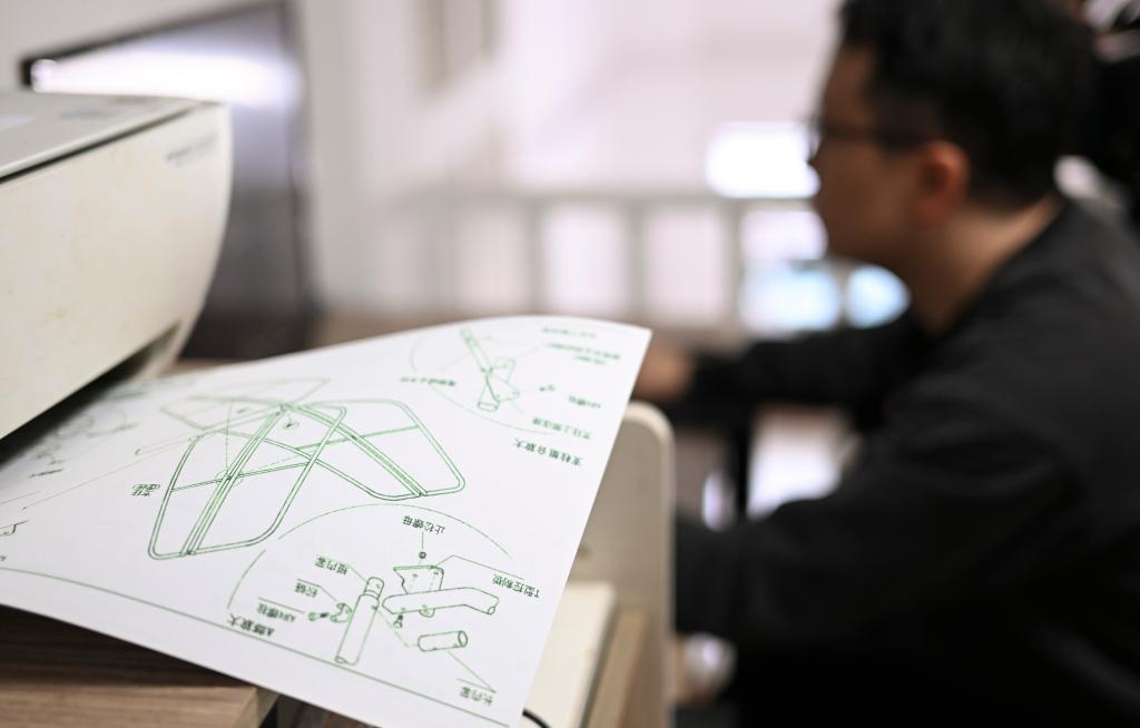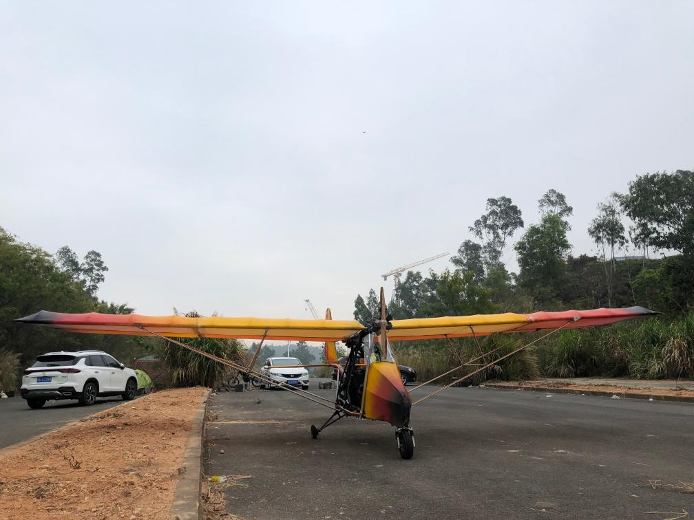 在大芬村的工作室,他搭建起工作间,开始了造飞机之旅。从学习CAD制图到寻找合适材料搭建飞机骨架,从发动机调试到亲手设计飞机外观,他常常在工作间里一待就是十几个小时。2021年5月,他的第一架飞机“艺翔号”诞生。“艺和翔代表着我在画笔与机翼间的逐梦人生。”陈剑华说。