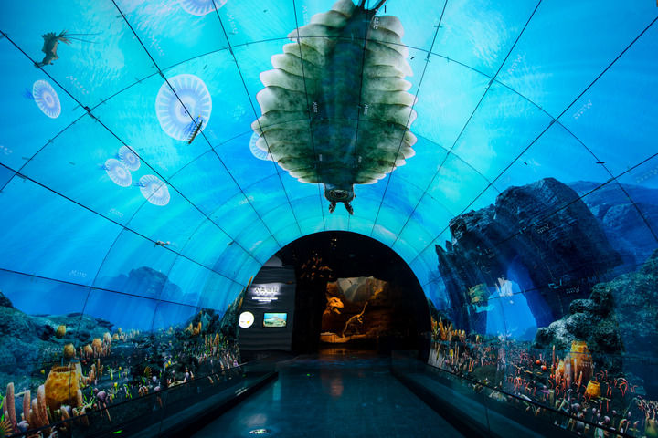 博物馆馆藏标本6万余件,充分运用多媒体技术和VR(虚拟现实)、AR(增强现实)等互动技术,以“生命大爆发、生命大演化、生物多样性”为主线脉络,完整讲述了地球生命由简单到复杂、从单一到多样,不断演化发展,形成现今地球多姿多彩生命形态的历程——
