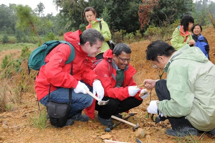 2011年9月国际教科文申遗专家在澄江野外考察。