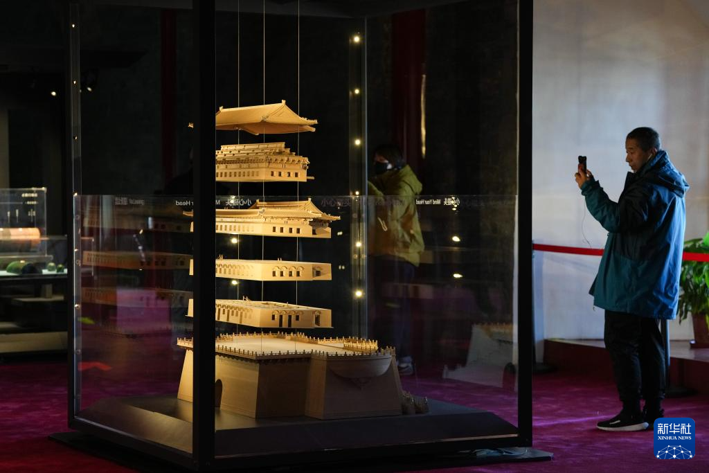 12月26日,参观者在正阳门箭楼内参观《北京中轴线——中国理想都城秩序的杰作》专题展览。 新华社记者 鞠焕宗 摄
