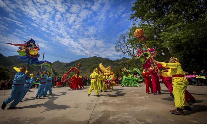 走进草林红圩小镇,米铺、布店、中医馆林立,古朴的木牌匾和仿古建筑重现当年圩场百业兴旺的街景。在毛泽东旧居萧万顺客栈前,不时有游客驻足“打卡”拍照。在非遗展示馆,珊田架花、黄坑油纸伞、遂川木雕、马头灯、傩舞“斗牛狮”等项目,让游客体验遂川民间文化的独特魅力。“每逢节假日,我们会在坪场上组织‘珊田架花’燃放表演,能吸引不少游客。”草林红圩小镇讲解员周秀珍介绍。