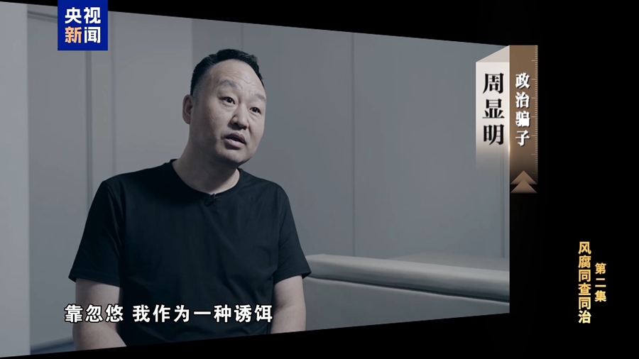 政治骗子 周显明:靠忽悠,我作为一种诱饵,就是我说我认识领导,因为他们本身心里有一种需求,我应对这种需求,我忽悠他。