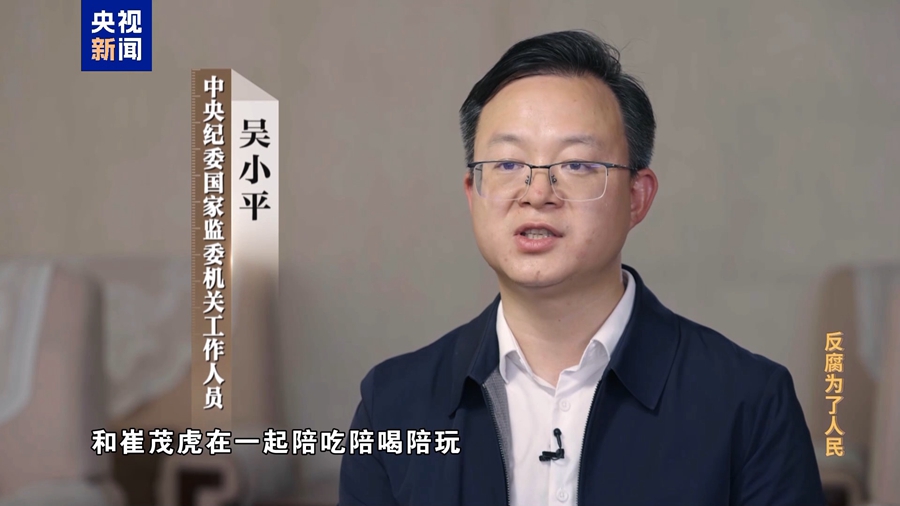 中央纪委国家监委机关工作人员 吴小平:由风及腐,风腐一体,它是一个规律,崔茂虎案件就是这样一个典型。不法商人先是通过和崔茂虎在一起陪吃陪喝陪玩,来拉扯关系建立感情,最后才发展成为权钱交易,利益共同体。