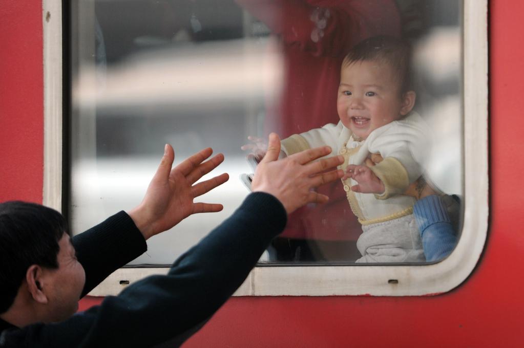 她趴在车窗前与送站的爸爸开心告别,早上6点多从北京出发,中午就能抵达一千公里外的老家。短暂几天的分别之后,过年时,他们又将团圆。