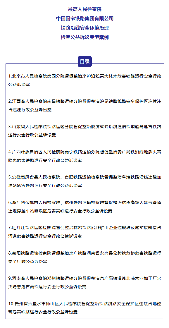 在另外一件典型案例中,针对天然气管道违法穿越车站咽喉区危及铁路运行安全问题,浙江检察机关加强路地检察协作,以公开听证凝聚整改共识,以检察建议督促行政机关依法履职。针对整改中的难点堵点,检察机关主动对接地方政府召开联席会议推动整改工作顺利推进,安全隐患整改既保障铁路运行安全,又兼顾群众正常用气需求,形成科学合理的整改方案,提升治理效果。(记者刘硕、樊曦)