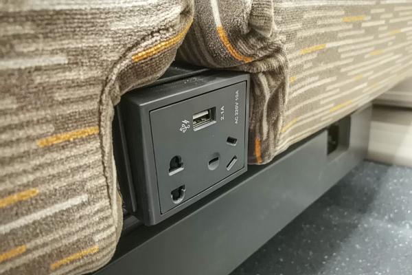 △硬卧车厢的充电口一般位于走廊壁板小桌板下方。