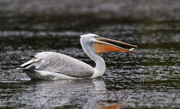 这是2024年11月16日在甘肃省陇南市西和县黄江水库拍摄的卷羽鹈鹕。新华社发(高峰 摄)