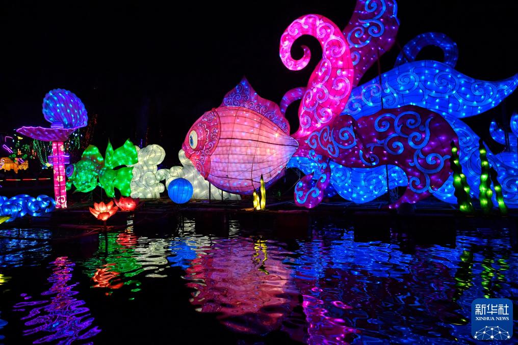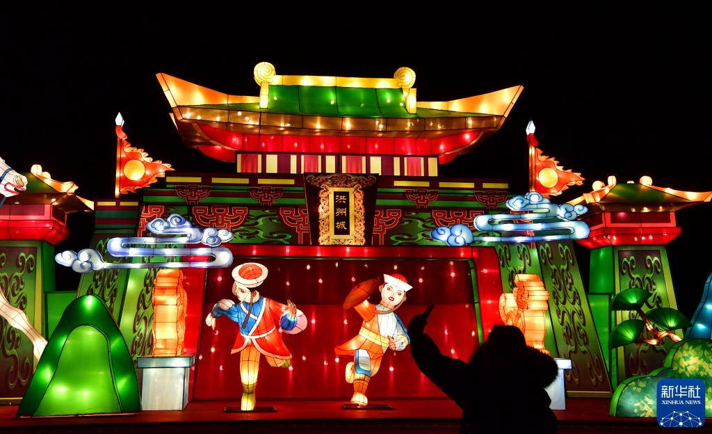 2021年2月14日拍摄的山西汾阳贾家庄村民俗庙会上的花灯。新华社记者 曹阳 摄