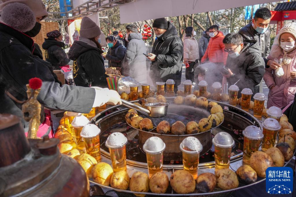 2023年1月25日,游客在山东济南千佛山新春游园会上选购美食。新华社记者 朱峥 摄