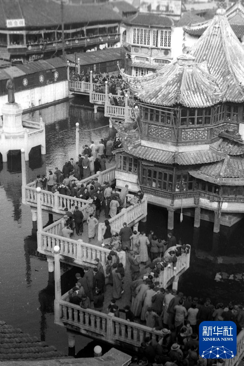 1951年春节,上海城隍庙庙会人流如织。新华社发