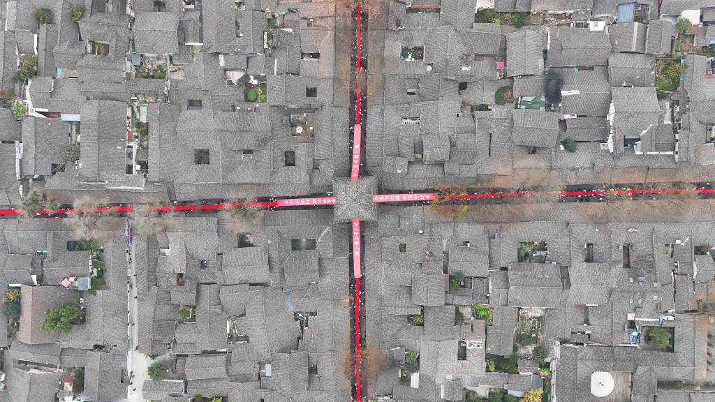 充满浓浓年味的阆中古城(无人机照片)。新华社记者 薛晨 摄
