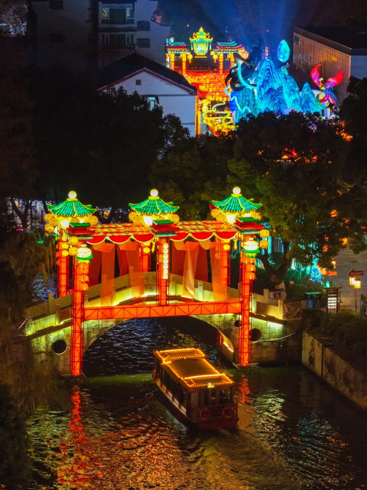 逛灯会是必不可少的春节传统民俗。随着夜幕降临,夫子庙白鹭洲公园内灯火璀璨,一组组栩栩如生的秦淮灯彩将春节氛围感“拉满”。