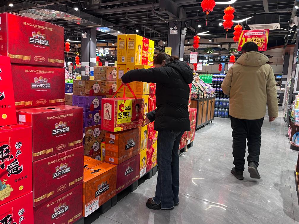 山西省方山县一商超里,人们正在选购伴手礼。新华社记者王怡静 摄