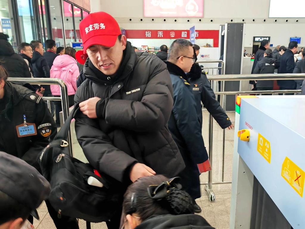 颉华在定西北站过安检。新华社记者 王朋 摄