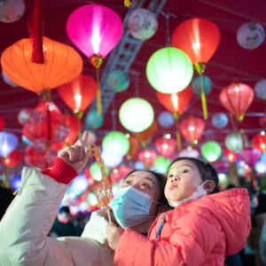 2023年2月5日,市民在湖北省博物馆的“钟鸣楚天元宵夜”灯会游园活动上观赏彩灯。新华社记者 肖艺九 摄