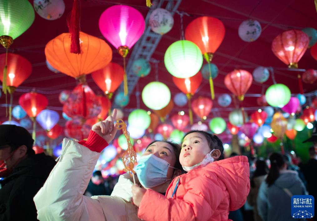 2016年2月22日,游客在武汉园博园观赏彩灯。新华社记者 程敏 摄