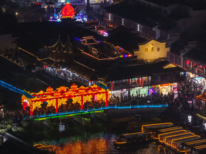 观赏灯会是中国人庆祝春节的传统民俗。第39届秦淮灯会自1月21日亮灯以来,从秦淮河畔到白鹭洲公园,从夫子庙到老门东,每天游人如织。携程发布的《2025年春节旅游总结报告》显示,秦淮灯会在全国新春灯会中热度靠前,位列“第一梯队”。