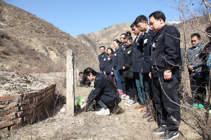 每逢清明节,青年职工都会祭奠长眠在大秦铁路崇山峻岭的建设者们。受访者供图