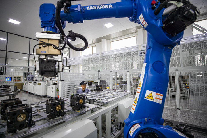 在湖东车辆段机辆制动机检修生产线,机械手臂自动抓取分类,自动超声波清洗。受访者供图
