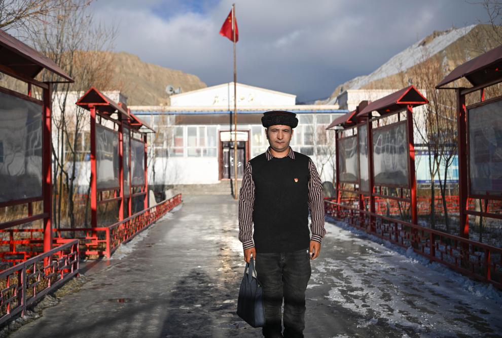 这是在新疆喀什地区塔什库尔干塔吉克自治县瓦恰乡夏布孜喀拉村拍摄的全国人大代表多来提曼·开米克(2025年1月3日摄)。
