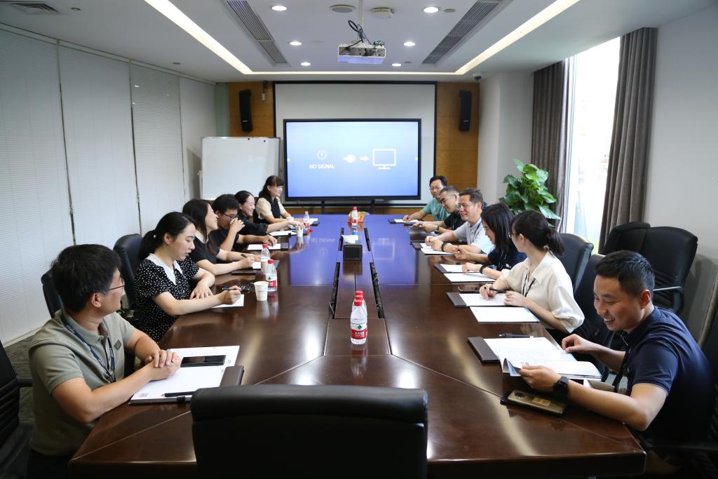 全国人大代表、浙江宇视科技有限公司研究院院长周迪(右四)在企业走访调研。(受访者供图)