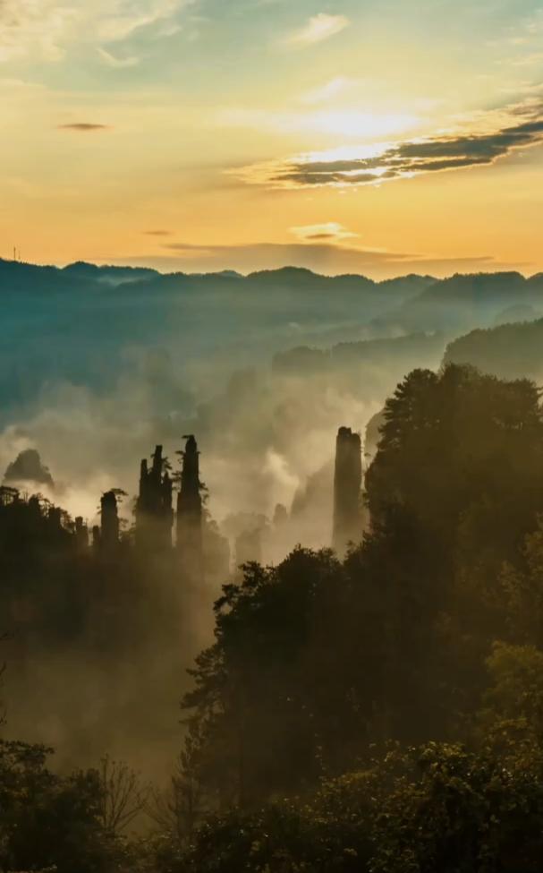 当第一缕曙光洒在张家界的奇峰之上,我们再次感叹,大自然的鬼斧神工之美。
