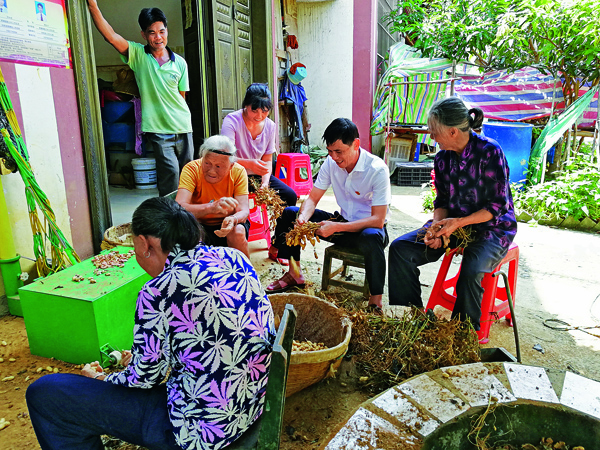 罗朝阳代表(右二)和村民们一起摘花生、话家常。(代表供图)