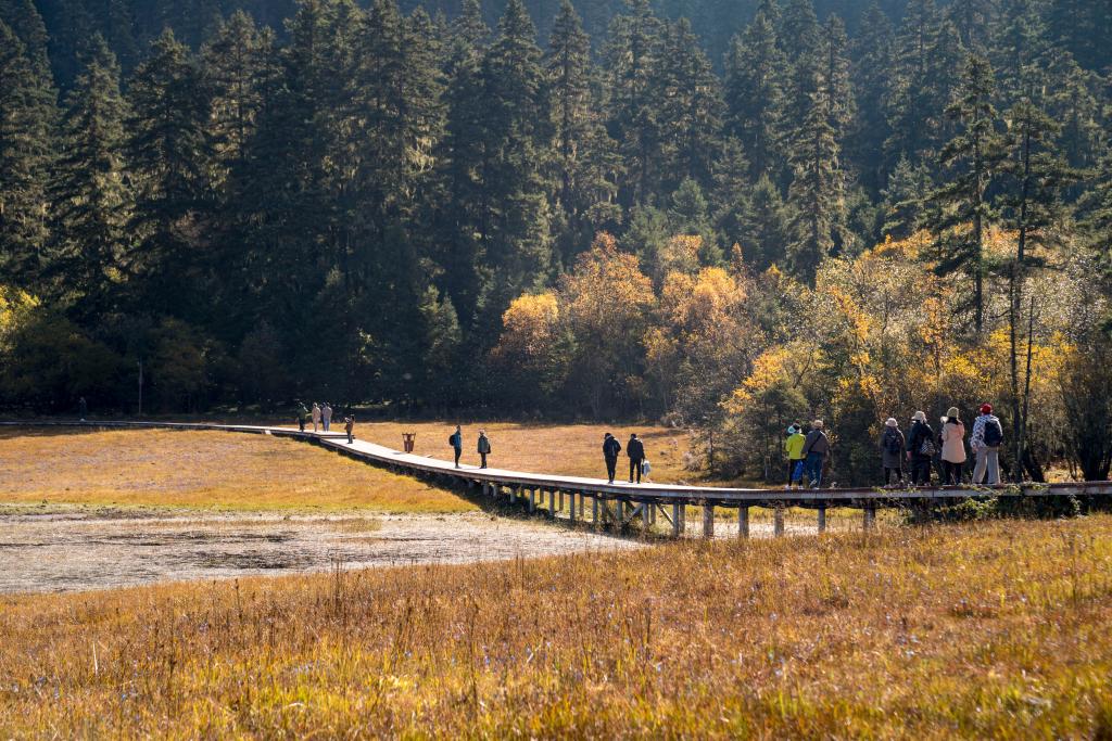 2024年10月28日,游客在云南普达措景区徒步。新华社发(彭奕凯摄)