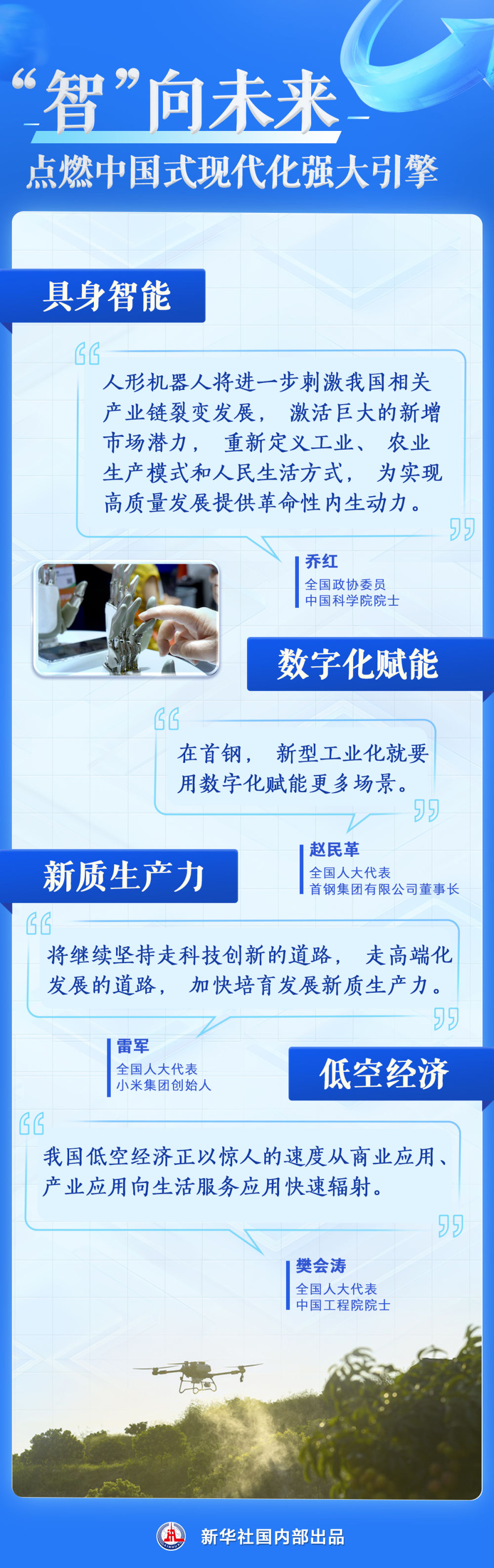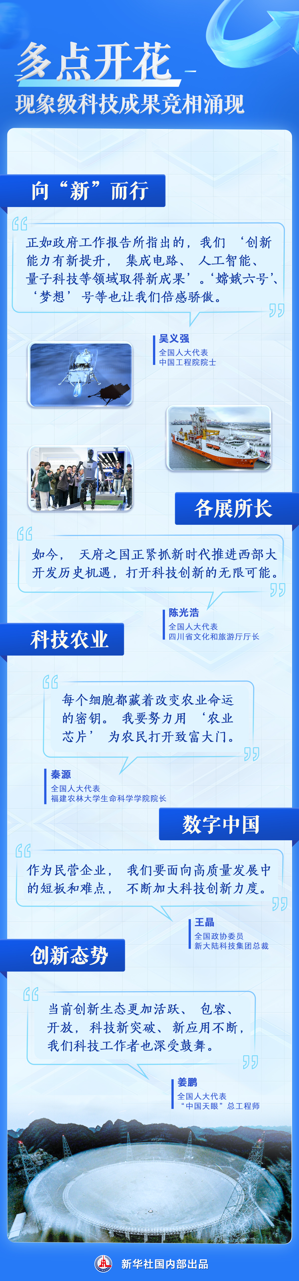 “新”潮澎湃、乘势而上。代表委员们信心满怀:把握创新机遇、勇攀科技高峰,以科技创新引领新质生产力发展,必将谱写中国式现代化新篇章。